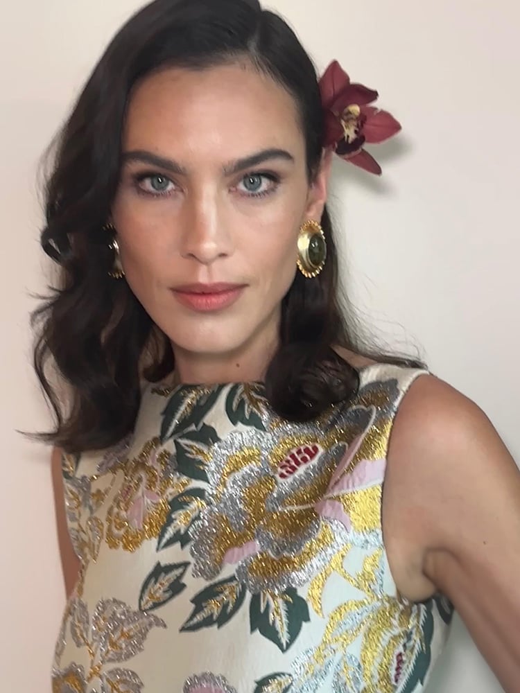 Our first look was rooted in the spirit of the Carolina Herrera floral gown Alexa wore: vivid, playful, with a nod to 60s silhouettes, think structured lines updated with today’s softer edges. Our goal was to channel the vibrant energy of Spanish florals, pairing that bold Herrera femininity with Alexa’s magnetic cool. We were inspired during this trip by Madrid’s most famous art, housed in the Prado. For this look we were very inspired by the hues of the Goya masterpieces; a festival of colour, and the peachy mouths of the women depicted in the romantic paintings of the 19th century. The makeup balanced structure and spontaneity: a softly defined lash line (using Carolina Herrera Chic Eyeliner Stick Matte) blurred at the edges for a retro feel that stayed easy and approachable.